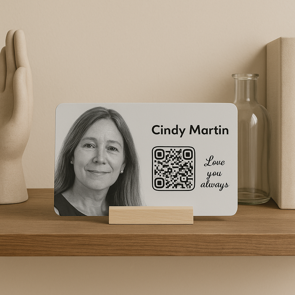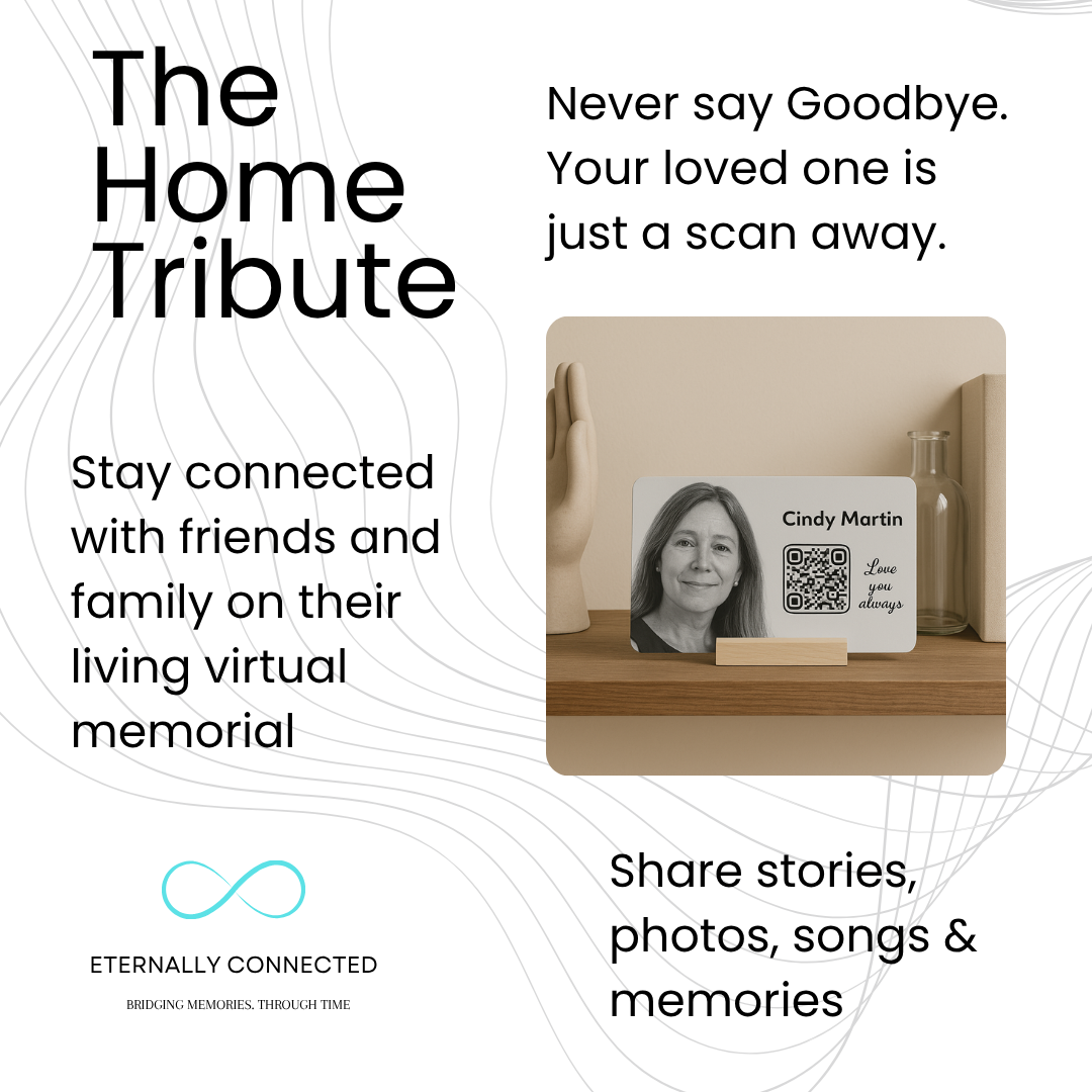 Some nights, you just need to feel close again. With our home QR code, you can revisit cherished memories, hear their favorite song, and see messages from others who remember them too.